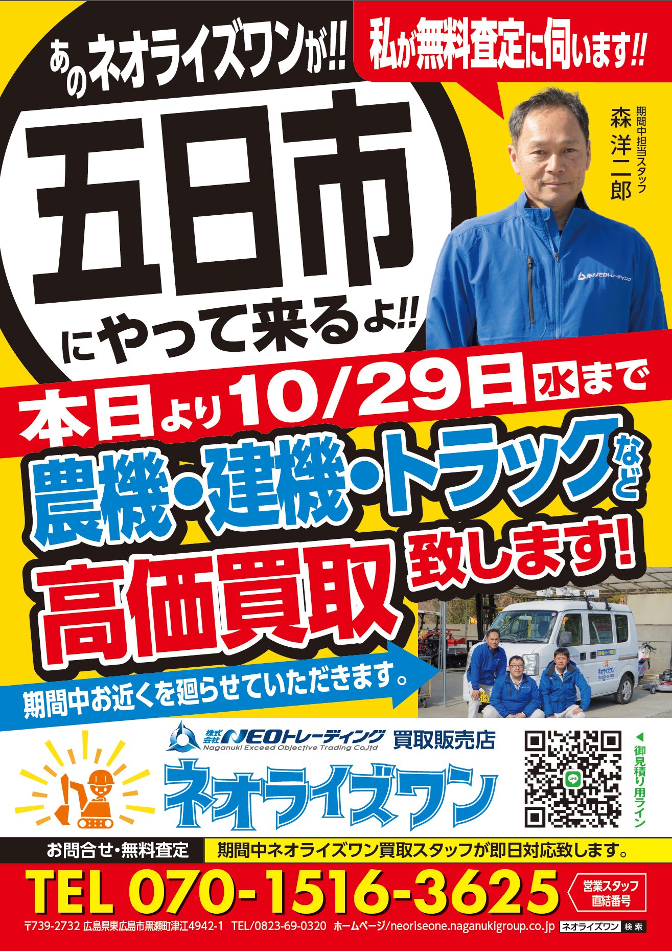 10/24(土)~10/29(水)五日市に無料査定に伺います。