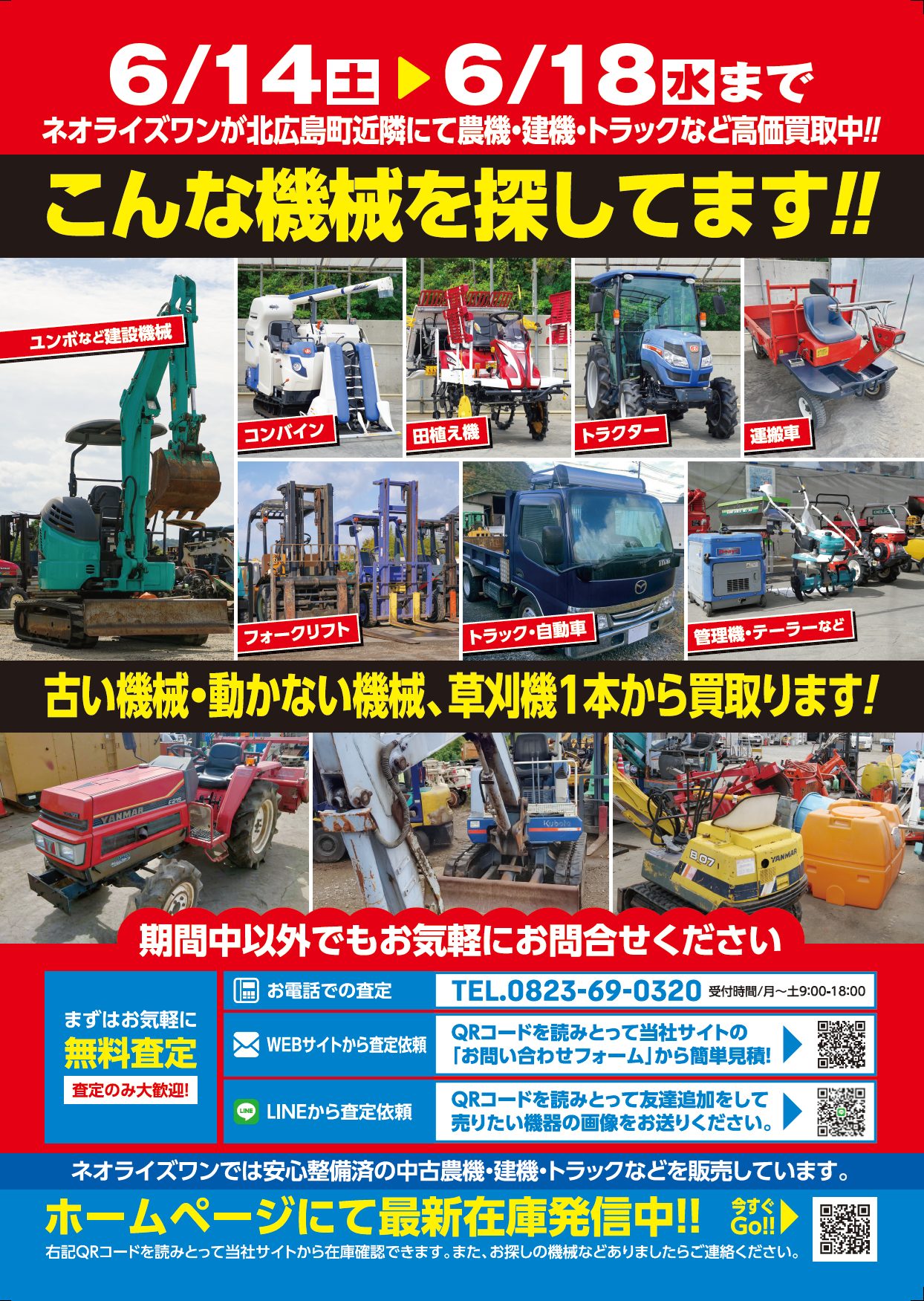 6/14(土)~6/18(水)北広島町に無料査定伺います。